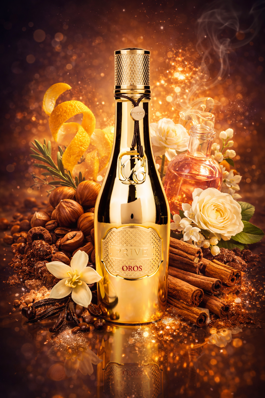 Egy krémes, gourmand női illat, ahol a mogyoró és a kávé meleg édessége finom citromhéjas frissességgel indul. A tubarózsa és a rózsavíz elegáns, nőies szívet ad neki, míg a vanília, kakaó és fahéj meleg, csábító alapot teremtenek. Összességében egy selymes, édes-fűszeres, esti viseletre tökéletes, magabiztos női kompozíció.